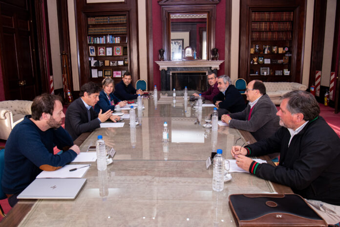 El gobernador de la provincia de Buenos Aires, Axel Kicillof, encabezó esta tarde una reunión con los intendentes de Trenque Lauquen, Miguel Ángel Fernández; de Suipacha, Alejandro Federico; de Saladillo, José Luis Salomón; y de Rauch, Maximiliano Suescún. Participaron también la ministra de Gobierno, Cristina Álvarez Rodríguez; el ministro de Hacienda y Finanzas, Pablo López; y el vicejefe de Gabinete, Juan Pablo de Jesús.