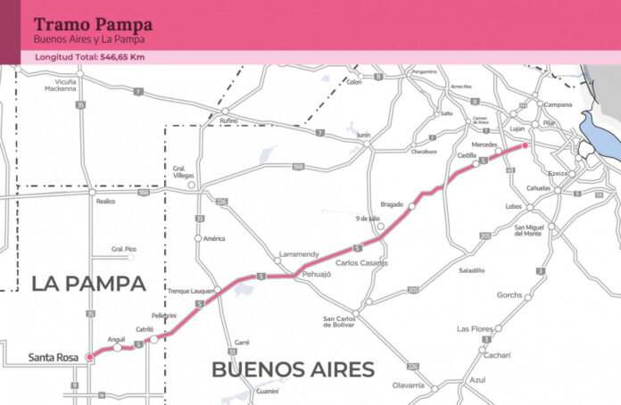 El tercer tramo a privatizar en esta segunda etapa de licitación es el llamado Pampa. Atraviesa territorio bonaerense desde el centro hasta el Oeste conectándolo con la provincia de La Pampa. Concretamente, son 546 kilómetros de la ruta 5 y van desde Luján hasta Santa Rosa.