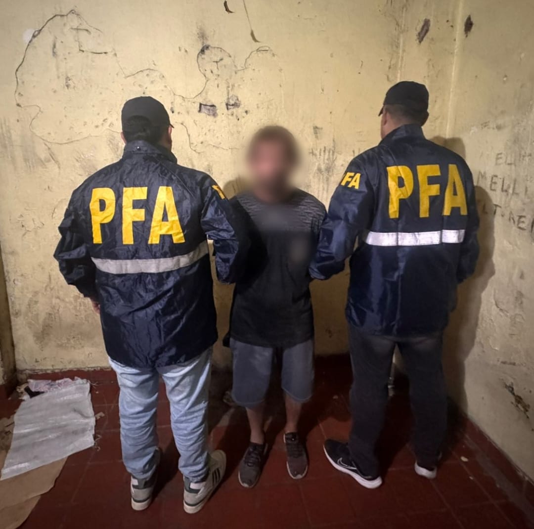 Los agentes federales, junto a efectivos de la Policía de la Provincia de Buenos Aires, efectivizaron la aprehensión del buscado en la Plaza Atalaya de la localidad de Rafael Castillo