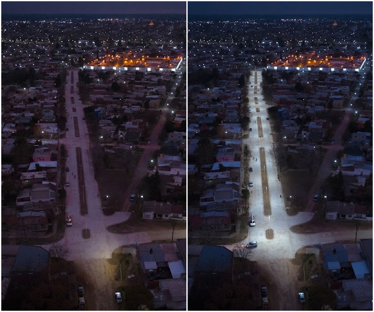 En la obra hídrica y de pavimentación en calle 23 de 50 a 58 se puso en funcionamiento la nueva luminaria led que se encuentra sobre el boulevard construido.