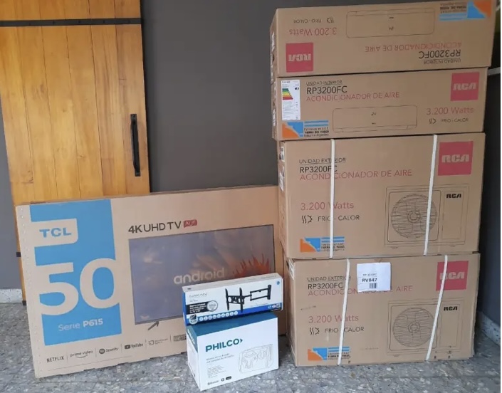 elementos tales como 2 aires acondicionados, 1 tv smart de 50 pulgadas, un