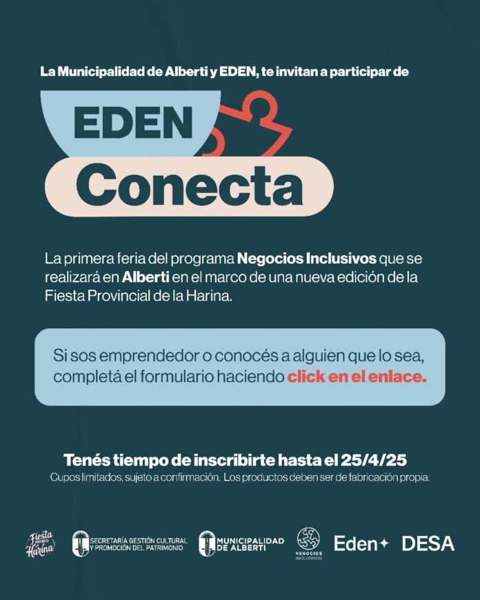 De esta manera, gracias a “EDEN Conecta” emprendedores de Alberti y localidades aledañas tendrán la oportunidad de exhibir y vender sus productos en el marco de la Fiesta Provincial de la Harina, un evento con fuerte impronta local y regional.