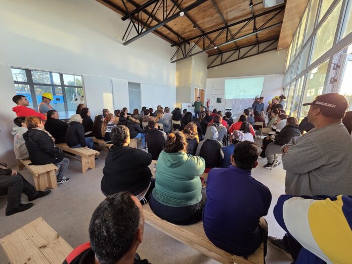 La reunión fue en próximo a inaugurar Centro Deportivo y Cultural del Barrio Mutti. Allí más de medio centenar de vecinos y vecinas pudieron ver la proyección en pantalla gigante del avance de obra, los aspectos del presente y el futuro de cómo continúa esta importantísima obra de infraestructura.