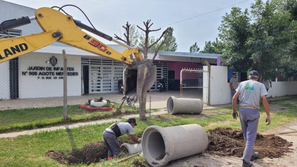 Durante el receso de verano, trabajadores municipales iniciaron esta importante obra que será fundamental para una mejor organización del espacio y del ingreso y egreso de los estudiantes a partir del inicio del ciclo lectivo 2023. “En el Jardín 908 de Agote los trabajadores de Servicios Públicos de la Municipalidad de Mercedes colocaron caños de alcantarilla para ampliar el espacio de entrada y salida”, explicó el presidente del Consejo Escolar, José Luis Pisano.