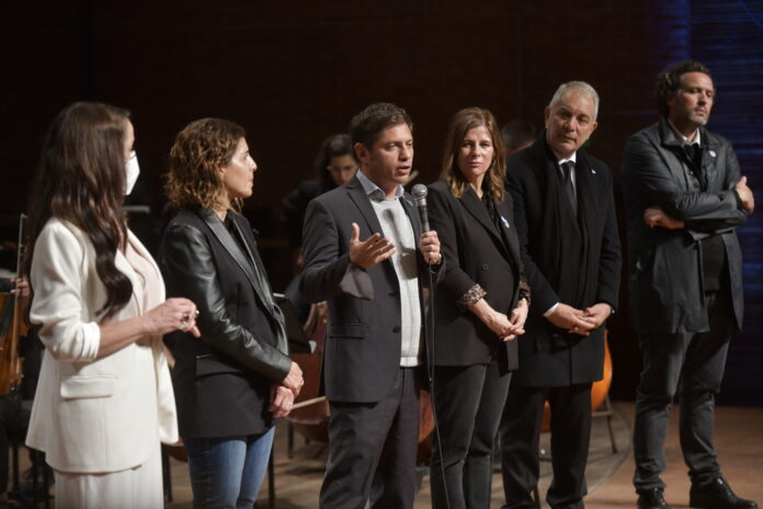 El gobernador de la provincia de Buenos Aires, Axel Kicillof, participó esta tarde junto a la presidenta del Instituto Cultural, Florencia Saintout, del acto de reapertura de la Sala Astor Piazzolla del Centro Provincial de las Artes Teatro Argentino de La Plata, donde se llevó a cabo un Concierto Patrio en el marco de las celebraciones por el 212° aniversario de la Revolución de Mayo.