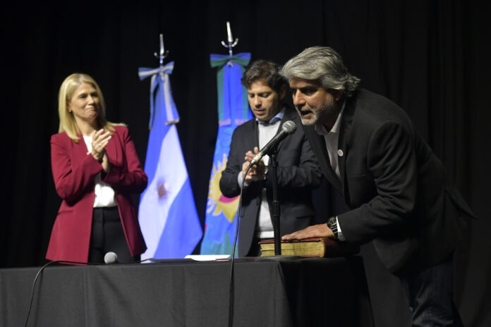 El gobernador de la provincia de Buenos Aires, Axel Kicillof, le tomó juramento esta mañana al nuevo ministro de Trabajo, Walter Correa. Fue durante un acto llevado a cabo en el teatro Metro de la ciudad de La Plata, junto a la vicegobernadora Verónica Magario.