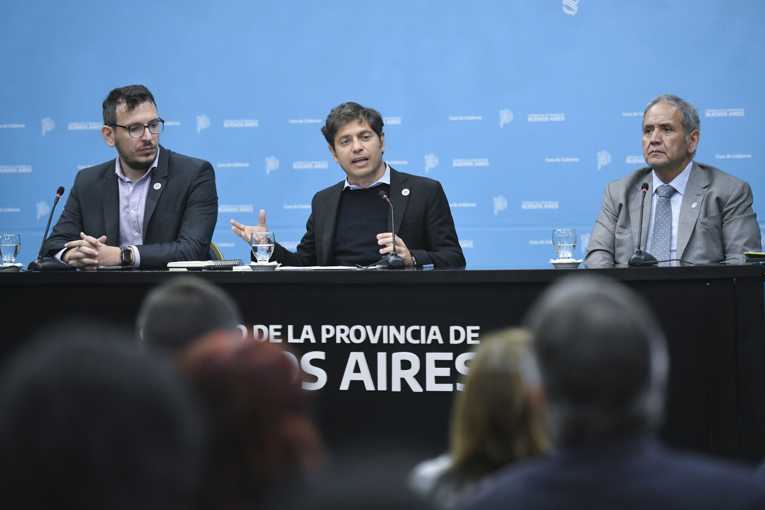 “El proyecto de modificación de la Ley 15.008 es el resultado de un acuerdo alcanzado para realizar un esfuerzo compartido que permita resolver la situación que nos ha dejado el Gobierno anterior con una norma que es letra muerta”, aseguró este lunes el gobernador Axel Kicillof durante una conferencia de prensa llevada a cabo en el Salón Dorado de la Casa de Gobierno, junto al presidente del Banco Provincia, Juan Cuattromo; y el diputado nacional y secretario general de la Asociación Bancaria, Sergio Palazzo.