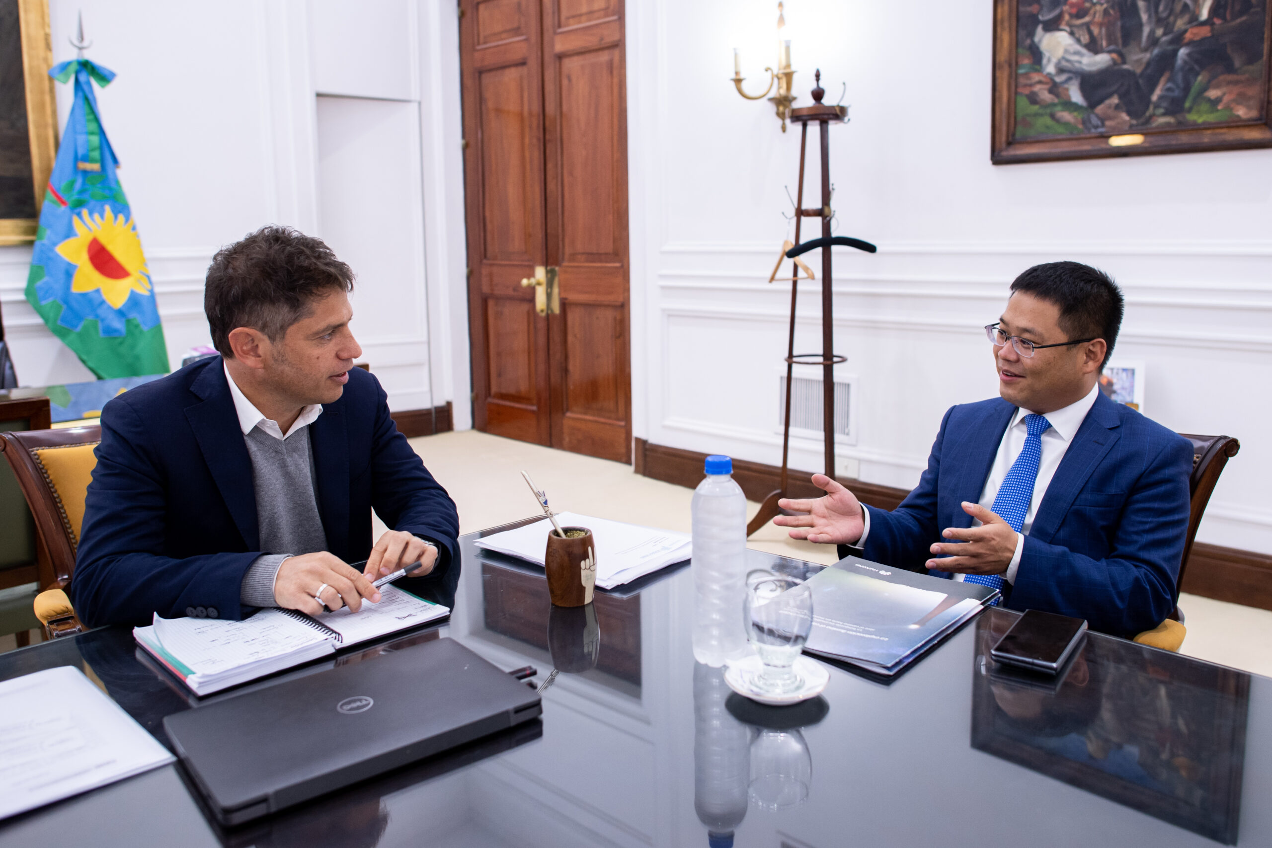 El gobernador de la provincia de Buenos Aires, Axel Kicillof, recibió este viernes en Casa de Gobierno al CEO de Huawei Argentina, Zhang Mingqiang, y a su gerente de Relaciones Institucionales, Wang Wenxin, con el objeto de potenciar el diálogo y los mecanismos de cooperación. Fue en el marco de la continuidad de las conversaciones que se profundizaron a partir de la visita oficial al Centro Tecnológico Huawei el pasado mes de febrero, durante la gira presidencial por China.
