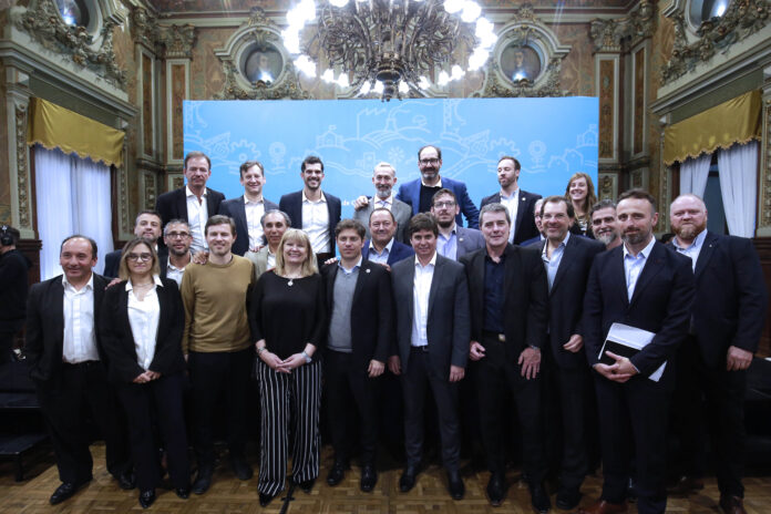 El gobernador Axel Kicillof encabezó este viernes el acto de presentación de los beneficios que el Banco Provincia ofrecerá a través de Cuenta DNI y tarjetas de crédito a sus clientes y clientas para celebrar su Bicentenario, el próximo 6 de septiembre. Fue en el Salón Dorado de la Casa de Gobierno, junto al presidente de la institución, Juan Cuattromo; y los ministros de Hacienda y Finanzas, Pablo López; y de Producción, Ciencia e Innovación Tecnológica, Augusto Costa.