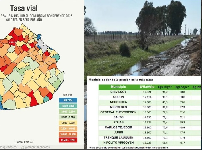 La Confederación de Asociaciones Rurales de Buenos Aires y La Pampa confeccionó un informe donde expone los valores que cobran los municipios bonaerenses de tasa vial. Del total relevado, 12 son los distritos en que más se paga y Mercedes ocupa el puesto 4.