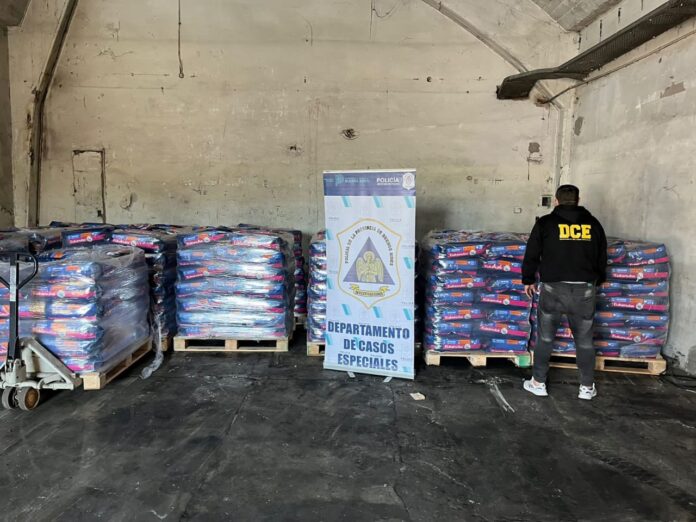 Las tareas investigativas continuaron y se logró determinar que en un galpón en San Justo, La Matanza, podrían encontrarse la mercadería robada. Tras llevarse adelante un allanamiento en el lugar, “el resultado del mismo fue positivo, logrando encontrarse parte de la mercadería sustraída. Estos elementos serán restituidos a su propietario a la brevedad”, detallaron las autoridades.