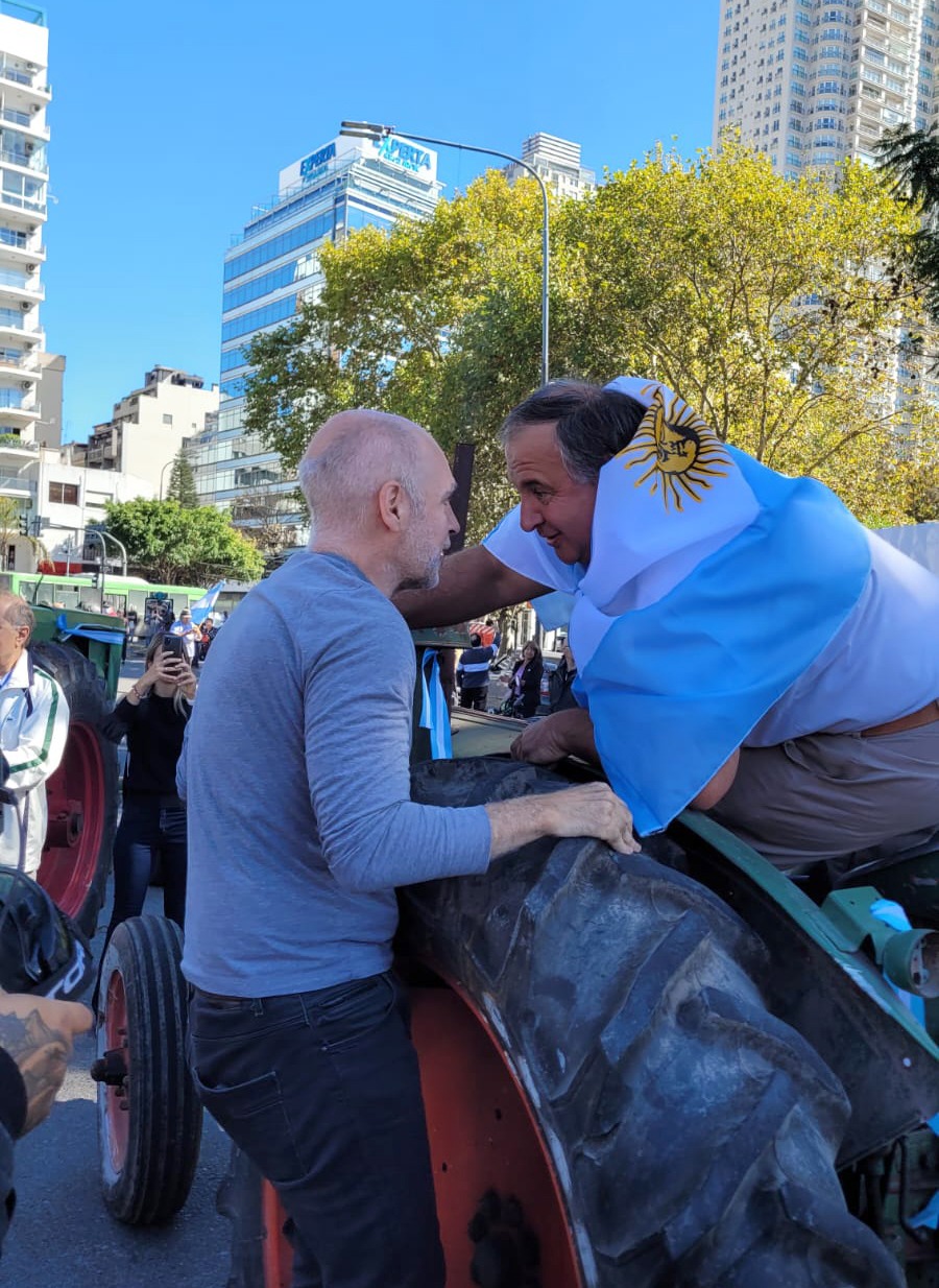 El jefe de Gobierno porteño, Horacio Rodríguez Larreta, participó hoy de la marcha del campo sobre la av. 9 de Julio que se moviliza hacia la Plaza de Mayo.