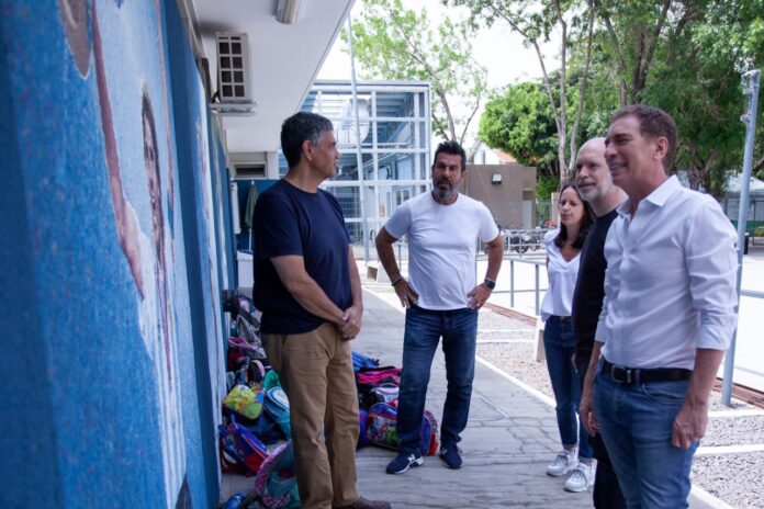 Los referentes de Juntos por el Cambio (JxC) estuvieron acompañados por la intendenta interina del distrito, Soledad Martínez, con quien caminaron por el centro de Munro y visitaron las piletas recientemente inauguradas del Campo Municipal de Deportes 1, donde continúan las obras de renovación en vestuarios, gimnasios y SUMs.