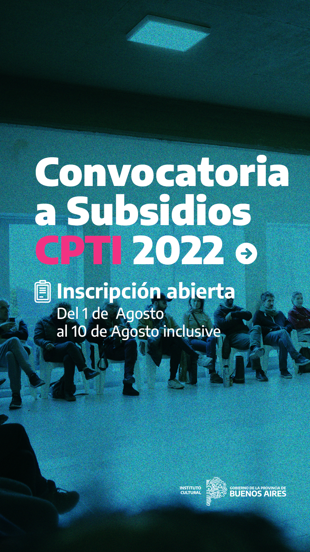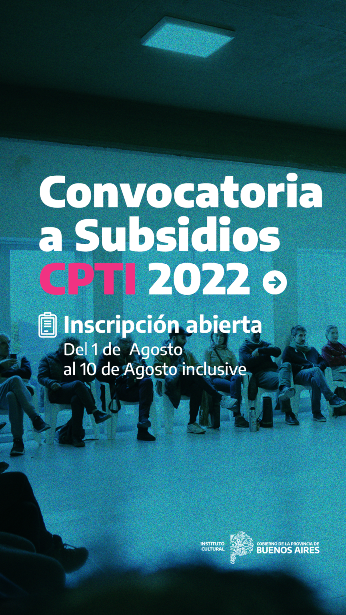 El Consejo Provincial de Teatro Independiente (CPTI) del Instituto Cultural de la Provincia de Buenos Aires, lanza la convocatoria de los subsidios 2022 desde este 1 al 15 de agosto para la producción de obras, giras, festivales, congresos, encuentros, investigación, publicación editorial, mantenimiento y funcionamiento de sala, proyecto de gestión colectiva y equipamiento de grupos estables y teatros independientes. La misma estará vigente del 1 al 15 de agosto inclusive.