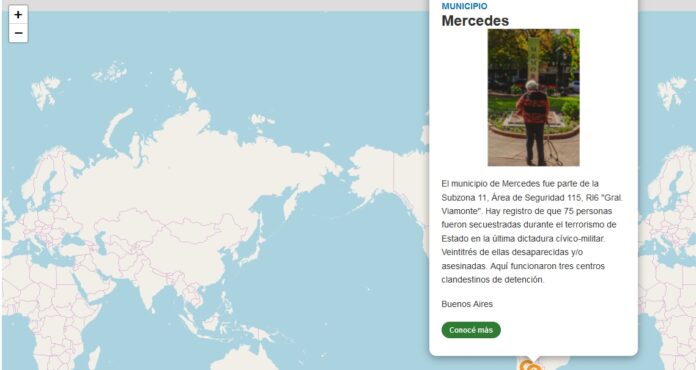 Desde la Secretaría de Derechos Humanos de la Nación se impulsaron este año los Mapas locales por la Memoria, que es una iniciativa que busca georreferenciar hechos vinculados con el Terrorismo de Estado desde los gobiernos locales y rescatar las historias de las personas detenidas-desaparecidas y asesinadas con el propósito de que trasciendan a las nuevas generaciones. Para ello, en nuestra ciudad y a través de la Municipalidad de Mercedes se invitó a la Coordinación de Derechos Humanos local a ser parte.